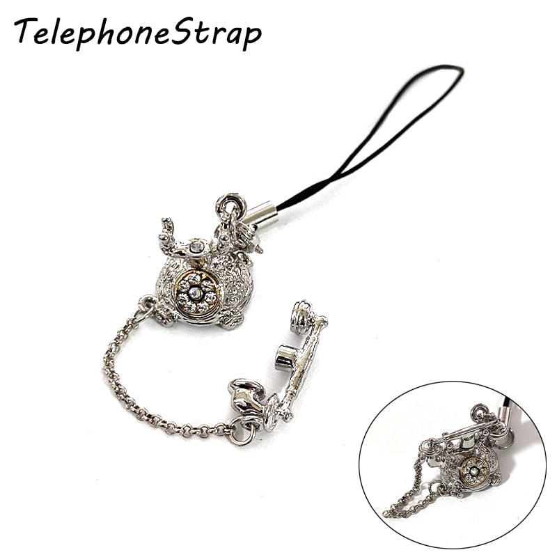 ■ストラップ おしゃれ テレフォン ミニチュア 電話機 シルバー かわいい キーホルダー アンティーク レディース メンズ