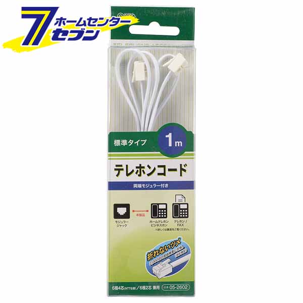 「テレホンコード 標準タイプ ホワイト 1m [品番]05-2602 TEL-C2602W オーム電機」はホームセンターセブンが販売しております。