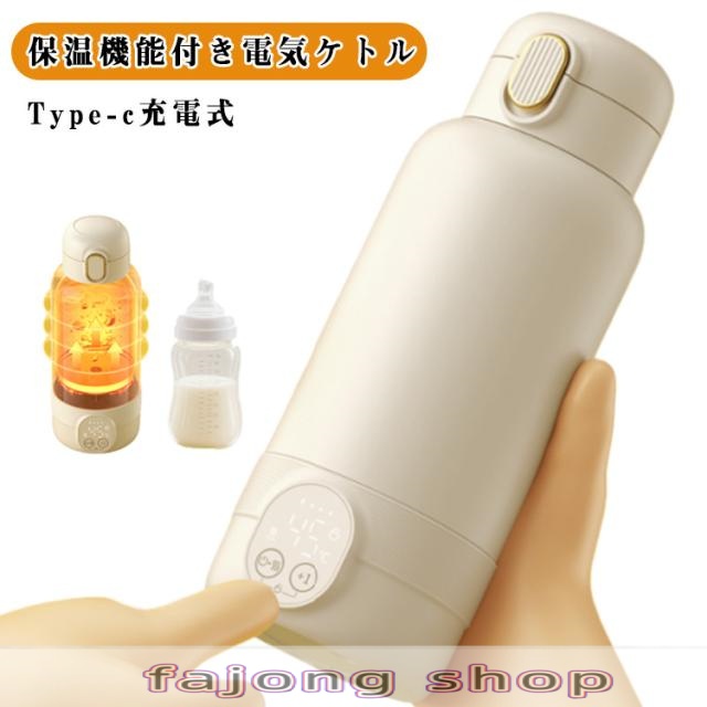 ポータブル 500ml Type-c充電式 電気ケトル 24H保温機能 2min急速加熱 持ち運び 電気ケトル 電気ケトル 電気ポット 保温電気ケトル 小型 ポータブル 粉ミルク 軽量 保温機能付き 水筒 タンブラー ポータブル 調乳ポット