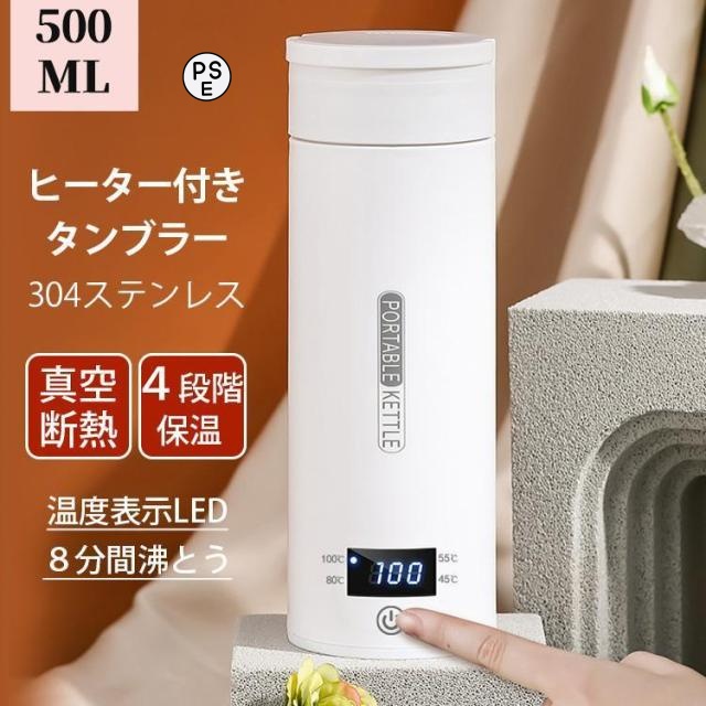 電気ケトル 小型 電気ポット ポータブル トラベルケトル 携帯湯沸かし器 大容量500ml 急速加熱 4段階温度設定 空焚き防止機能 漏れ防止 電気温水カップ 電気水筒 304ステンレス製 真空断熱マグ LEDディスプレイ 自動電源OFF 持ち運びが簡単