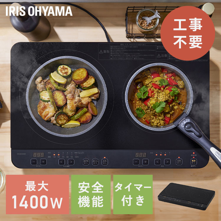 新機能!温度調理モードで料理の幅が広がる。●電源AC100V(50/60Hz)●定格消費電力1400W●商品サイズ(cm)幅約28×奥行約32.6×高さ約5.4●質量(電源コード含む)約2.2kg●電源コード長さ約1.8m●ヒーターIHヒーター 1400W●火力調節加熱:6段階(火力)80W相当、200W相当、500W、700W、1000W、1400W温度調理(約cm):6段階(水温)50℃、60℃、70℃、80℃、90℃、100℃揚げ物調理(約cm):6段階(油温)150℃、160℃、170℃、180℃、190℃、200℃※IHコンロでは使えるなべと使えないなべがあります。使うなべは、一般財団法人「製品安全協会」のSGマークのあるもの、またはアイリスオーヤマ製「IH対応」なべをおすすめします。(アイリスオーヤマ)