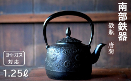 ■【ふるさと納税】南部鉄器 鉄瓶〔唐菊〕 1.25L 【IH対応】/ IH調理器 ih 伝統工芸品 やかん ケトル キッチン用品 食器 日用品 雑貨 伝統