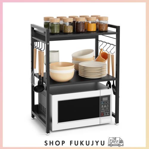 ■DEWEL レンジラック レンジ台 レンジ上ラック キッチンラック 中棚板高さ調節可 フック付き 幅53cm 食器棚 トースターラック ラック アジ