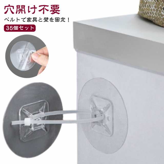 35セット 穴開け不要 家具転倒防止グッズ テレビてんとう防止 家具転倒防止器具 防災 災害防止 壁固定 転倒防止金具 タンス 食器棚 防災用品 耐震グッズ 取り付け 地震 パソコン 耐震ストッパー 耐震ベルト