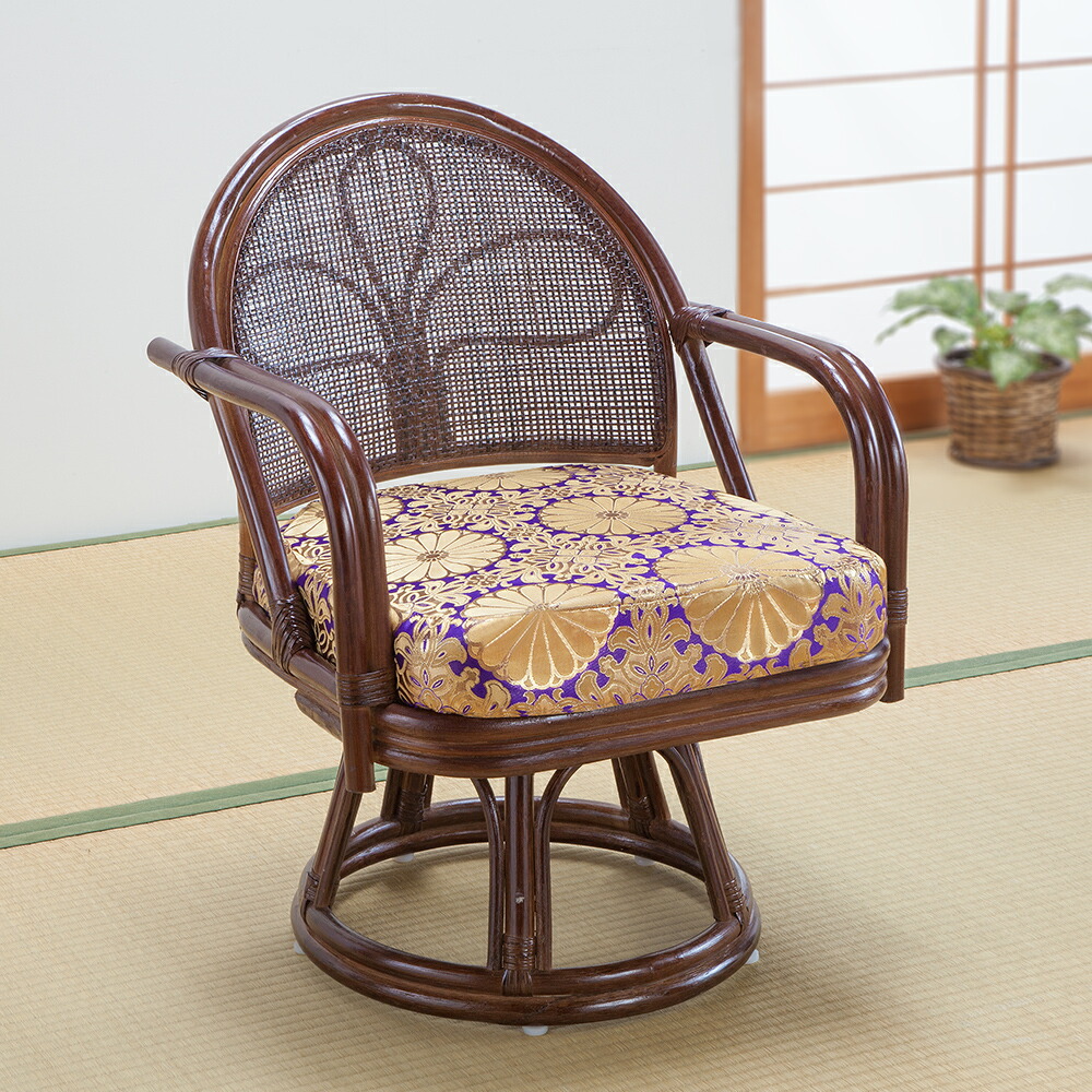 ■天然籐 金襴 肘付き 回転 高座椅子 椅子 チェア ラタン 和風 アジアン家具 仏間 仏前 日本製 送料無料