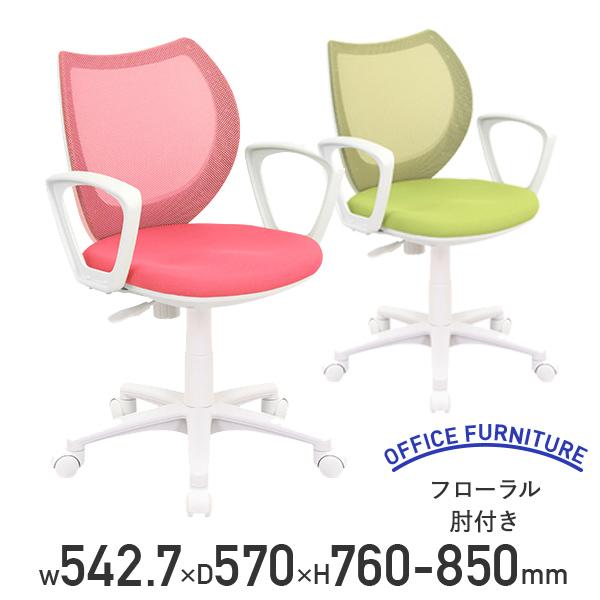 ■フローラル 肘付き W542.7 D570 H760-850 メッシュチェア オフィスチェア 事務椅子 ピンク/グリーン 代引不可 テレワーク応援 IR-FLO43MF