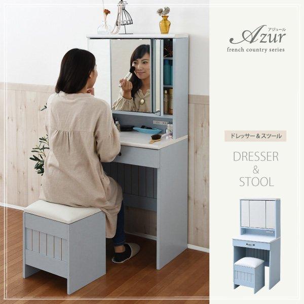 ■ドレッサー おしゃれ 幅60cm 椅子セット 三面鏡 大容量 収納 コンセント付き 椅子付き チェア スツール メイク台 化粧台 北欧 新生活 azu