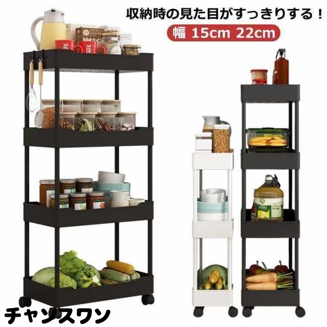 すき間収納ワゴン スリムトローリー 幅 15cm 22cm ワゴン すき間 収納 すきま スリム 隙間 隙間ラック 送料無料 収納ワゴン キャスター付き スリム収納 収納ラック コンパクト キッチン隙間収納 洗面所 キッチンワゴン ストック収納 冷蔵庫 横 冷蔵庫横