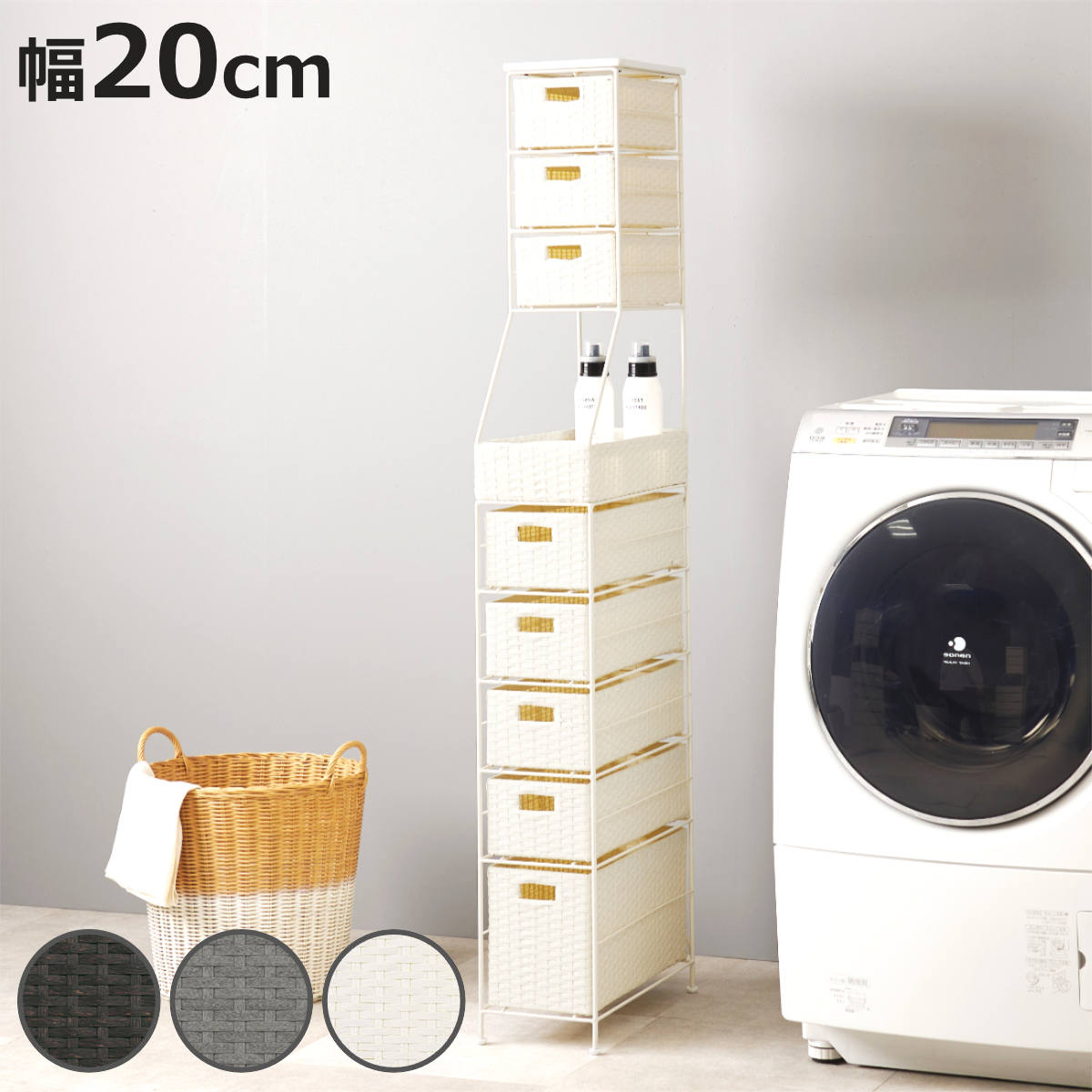 ■ランドリーチェスト 幅20cm 8段 スリム 引き出し 隙間収納 ( ランドリー チェスト すき間 収納 防水パン対応 アジャスター 引出し 防水