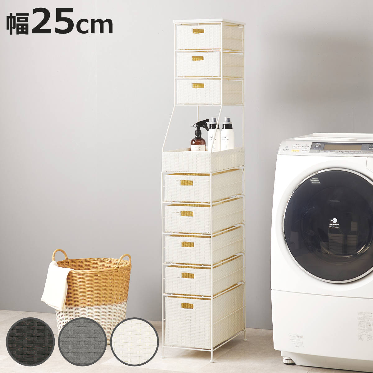 ■ランドリーチェスト 幅25cm 8段 スリム 引き出し 隙間収納 ( ランドリー チェスト すき間 収納 防水パン対応 アジャスター 引出し 防水