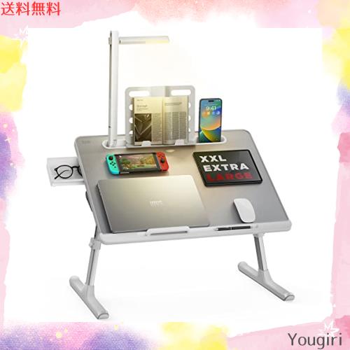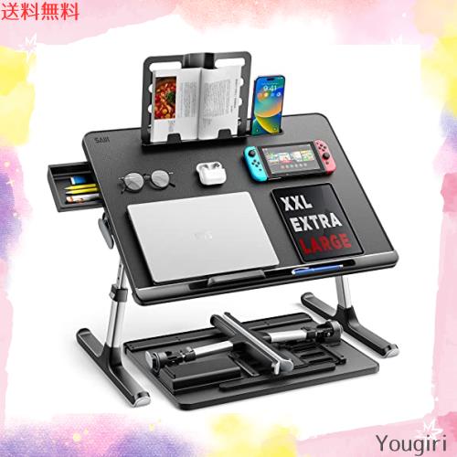 ■SAIJI 折りたたみミニテーブル「安定性強化版」ローテーブル ベッド用 軽量 大容量天板 角度・高さ調整可能 引き出し & ブックスタンド付き