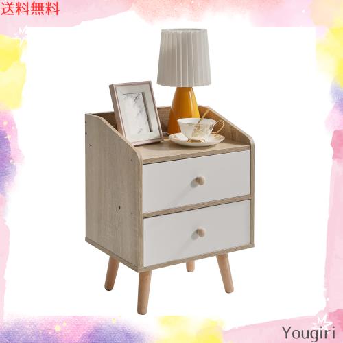 ◆商品名:IBUYKE サイドテーブル ナイトテーブル 多機能 30cm x 37cm x 48cm 引出し2個付き リビングや寝室、ソファの横などでの使用に適していま