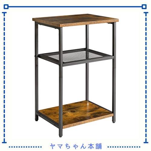 ◆商品名:IBUYKE サイドテーブル コンパクト ヴィンテージ風 ナイトテーブル 多機能 オープンラック 3段 収納ラック アジャスター付 小物置き 組立