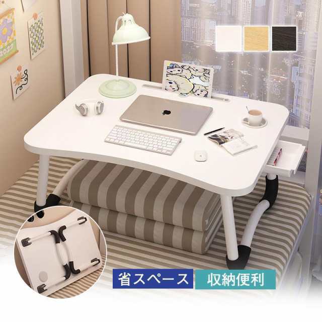 ベッドテーブル テーブル 引き出し付き! 折りたたみテーブル 一人用 多機能 おしゃれ サイドテーブル ミニテーブル