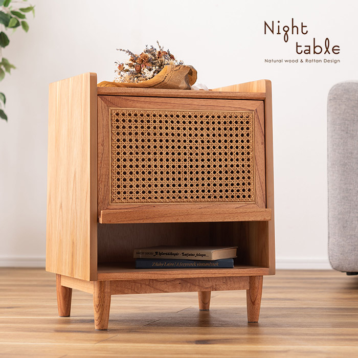 ■ラタン ナイトテーブル ベッドサイドテーブル 木製 引出し収納 高さ52cm ドレッサー 寝室 ソファ横 サイドテーブル 籐 木目 コンパクト