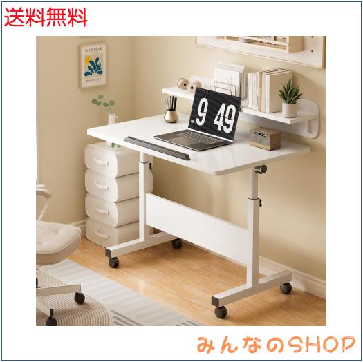 ■Rshtong 昇降デスク 折りたたみテーブル パソコンデスク 北欧 机 高さ調整 テーブル 幅80cm×奥行40cm PCデスク サイドテーブル キャスタ