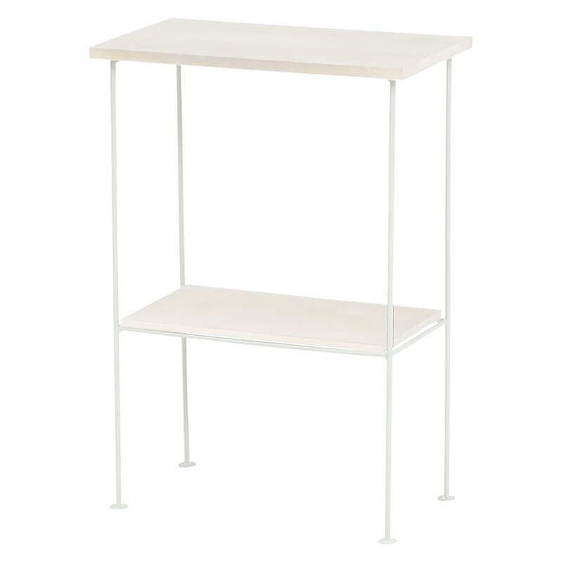■完成品 ラック 幅35 高さ50 サイドテーブル アイアン 鉄製 木製 天板 ホワイト 白 電話台 玄関 エントランス トイレ サニタリー ラック
