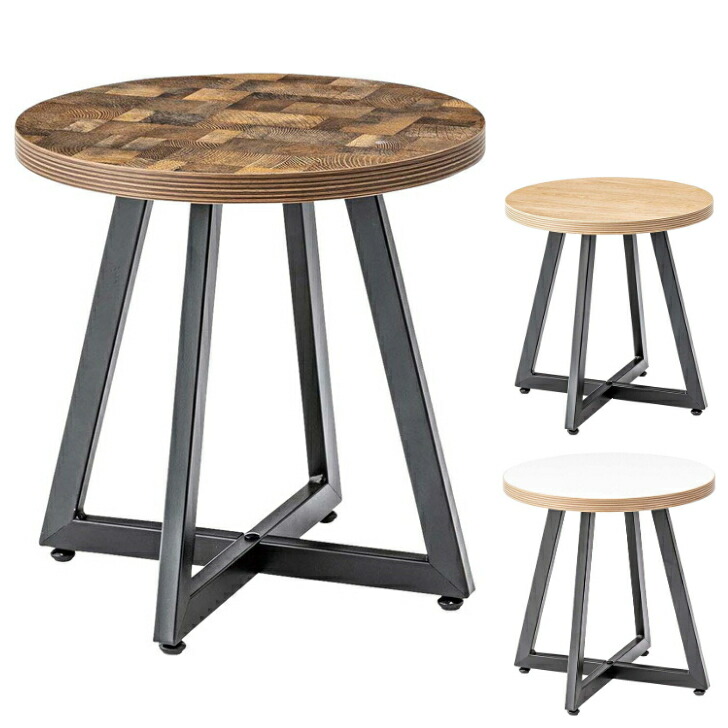 ■ラウンドテーブルS サイドテーブル 化粧合板 スチール 丸形 ベッドサイド ミックス ナチュラル ホワイト PT-334 東谷 飾り台 コーヒーテ