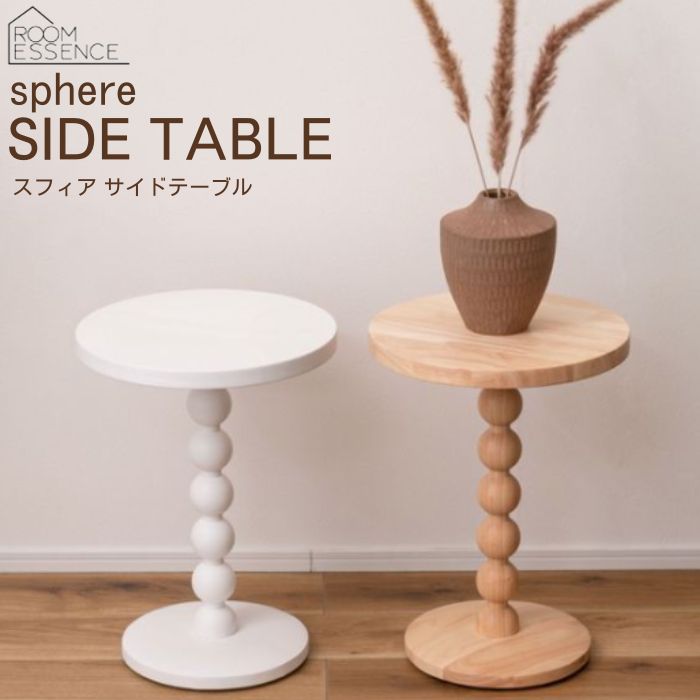 優しい空間を作るラウンドデザイン ベッドやソファ周りで活躍するサイドテーブル 支柱の球体が特徴的で置くだけでおしゃれな演出に。 様々なインテリアに合わすことが出来ます。 軽量なので、女性でも楽に持ち運びできます。 サイズ:W350×D350×H475mm 重量:3.0kg 静的耐荷重:5kg 素材:天然木(パイン) 塗装:ラッカー塗装 備考:お客様組立品 ※基本送料無料(沖縄県・北海道・一部地域・離島等の条件によりましては別途送料が必要となります。)