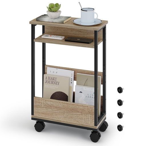 ■【送料無料】WOWQ サイドテーブル スリム キャスター付き 幅40×奥行き18×高さ59.5CM ナイトテーブル スリム ベッドサイドテー