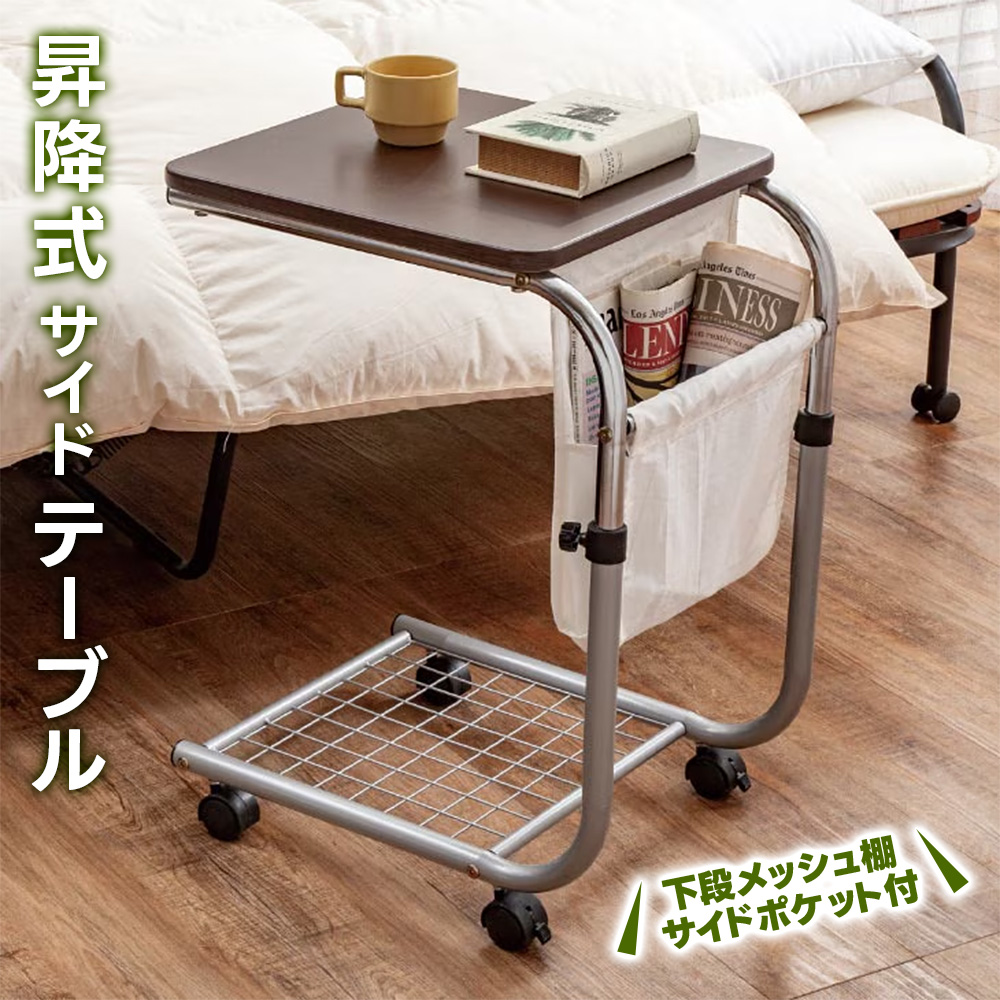 ■ファミラ サイドテーブル 昇降 キャスター スリム 高さ ミニテーブル お洒落 ベッドサイド 机 ナイトテーブル 翌日配送