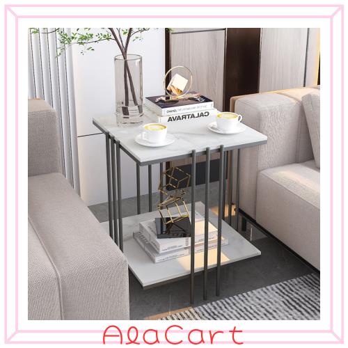 ■UNHO サイドテーブル ナイトテーブル ベッドサイドテーブル 大理石調 石材天板 ソファ横 コーヒーテーブル 白 棚付き ソファテーブル お