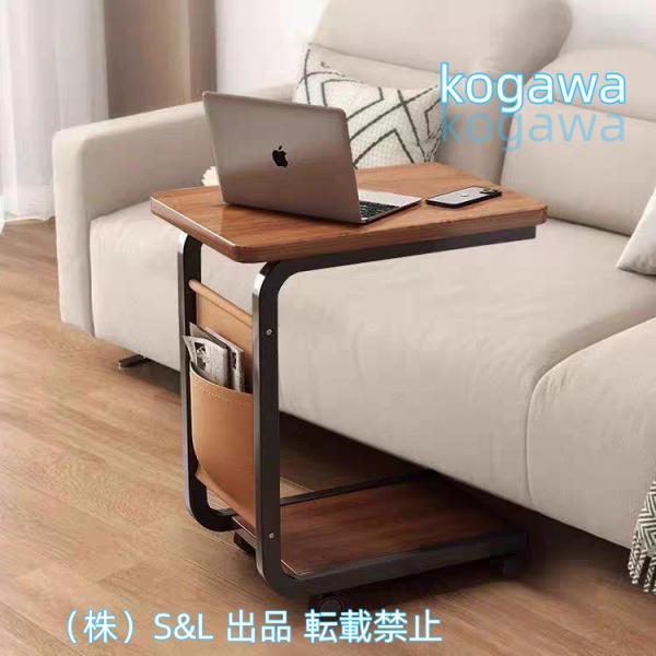 ■サイドテーブル コの字型 キャスター付き 北欧 おしゃれ ベッド ソファ スリム コンパクト コの字 アイアンフレーム 株式会社S&L木製天