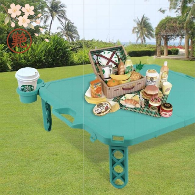 ■テーブル 軽量 シンプル レジャー 角型 折りたたみ ハンディーテーブル 持ち運び 簡易テーブル アウトドア ドリンクホルダー付き ローテ
