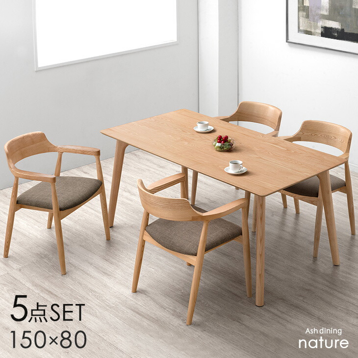 ALL天然木アッシュ ダイニングセット 4人掛け 肘付き チェア 5点セット 150cm テーブル ダイニングテーブルセット ダイニング ダイニングテーブル ダイニングチェア デザイナーズチェア 北欧 4人 5点 おしゃれ 【超大型】【後払/時間指定NG】【商品番号:80500023】