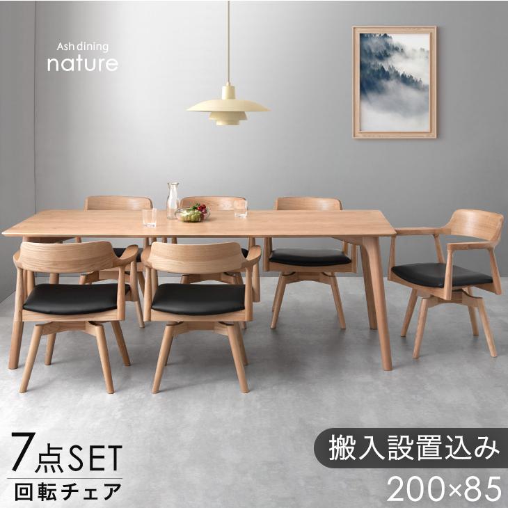 ■【正午〜P5%還元】 【テーブル搬入設置込】 ダイニングセット ALL天然木アッシュ 回転椅子 5点セット 6人掛け 200cm テーブル ダイニング