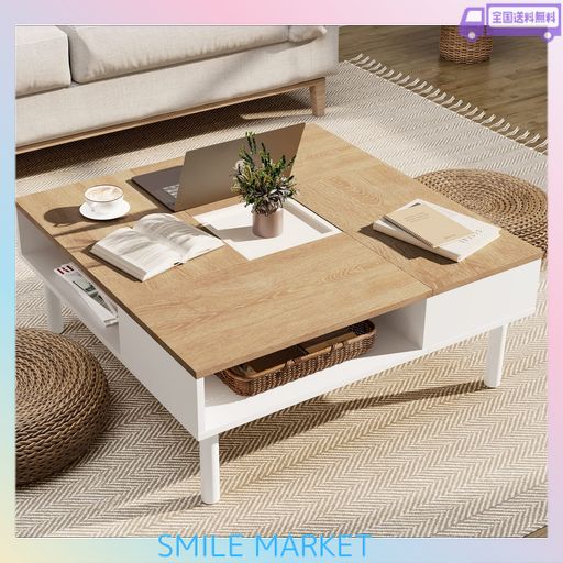 ■WAMPATローテーブル センターテーブル 正方形 木制 コーヒーテーブル ちゃぶ台 座卓 コンパクト収納 隠し収納スペース付き リビング用テ