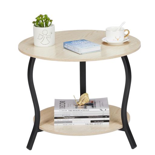 ■ZEXVIDA コーヒーテーブル 丸型 ローテーブル 幅58×奥行58×高さ48.3CM 2段 リビングサイドテーブル ちゃぶ台 木目調 (オーク)
