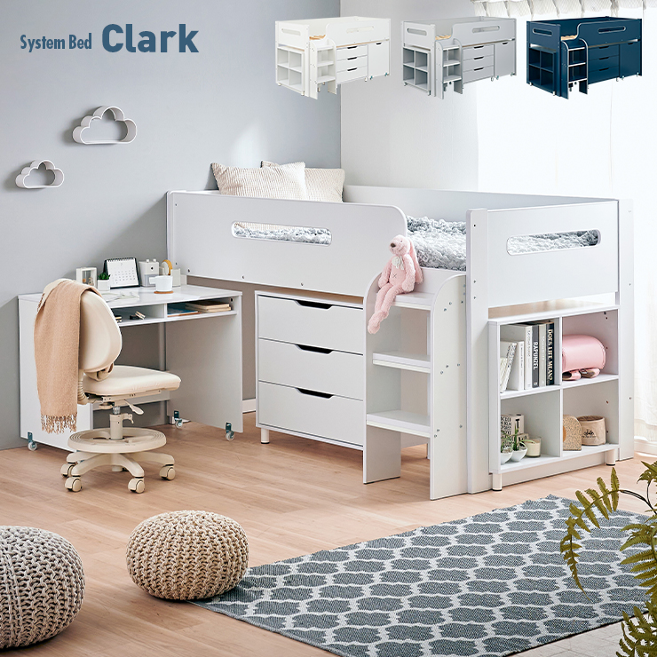 ■システムベッド Clark(クラーク) 3色対応 学習机 システムベッドデスク ロータイプ ロフトベッド システムベット ロフトベット デスク付