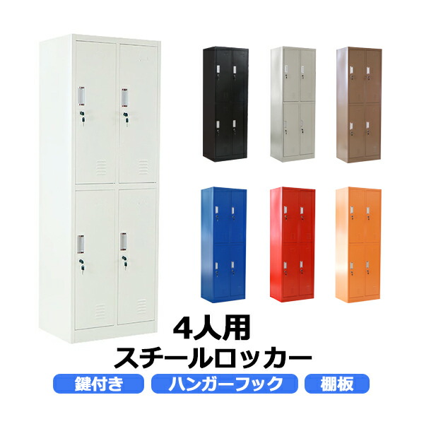 ■ロッカー おしゃれ スチールロッカー 4人用 鍵付き スペアキー付 4列1段 スチール製 収納 オフィス 事務所 会社 業務用 オフィスロッカー