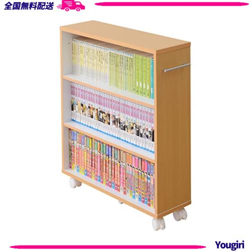 ■[山善] 本棚 スリム (キャスター付き 本棚) 幅57.5×奥行17×高さ68.5cm 取っ手左右付け替えOK コミック (まんが) 収納目安105冊 組立品