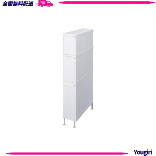 ■ライクイット (like-it) ランドリー 収納 すき間 引出し スリム 3段 (着脱式アジャスター付) 約幅18.5×奥46.5×高92~94.5cm ホワイト 日