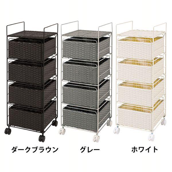 ■ランドリーラック RAN-2434DBR [代引不可] 全3色 ランドリー 収納 キャスター 引き出し チェスト ラタン調 水回り おしゃれ 隙間収納 サ