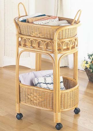 バスタイムを贅沢にする自然のやさしさおしゃれな上に通気性がよく、衛生的。ラタンは型崩れしにくいウィッカー編みで、上質感のある仕上がりです。上のカゴにはよく使う小物やタオルなどを置いて。キャスター付き。●サイズ:幅63×奥行37×高さ81cm●バスケット外寸:幅54×奥行34×高さ20cm●バスケット内寸:上段:幅49×奥行33×深さ17cm下段:幅49×奥行33×深さ15cm●上段と下段との間の寸法:27cm▲メーカー直送品▲代金引換不可▲ラッピング不可