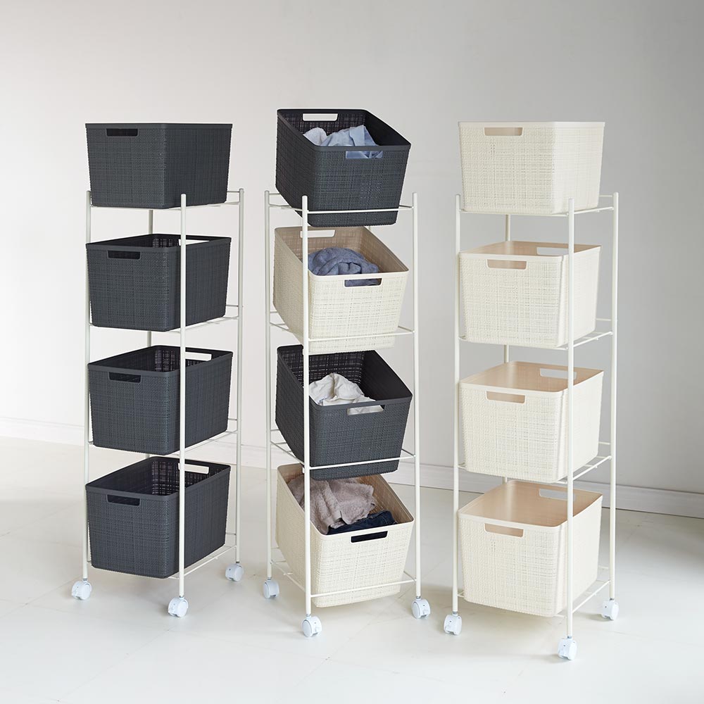 ■CURVER JUTE/カーバージュート バスケット ワゴン バスケット4個 トイレ 洗面所 ランドリー収納 ランドリー 洗濯かご KR0525