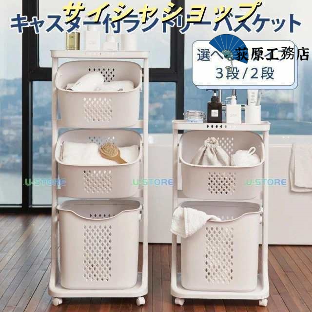 ■ランドリーラック 通販 RAN-2428 ランドリー収納 ランドリー ラック ランドリーバスケット カゴ 4個 脱衣かご 2段 キャスター付き 水回り