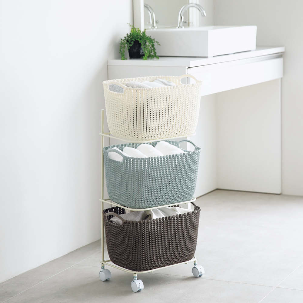 ■CURVER/カーバー ニット調ランドリーワゴン+バスケットセット 新スクエアタイプ(3段ワゴン+スクエア×3個) ランドリー 622006
