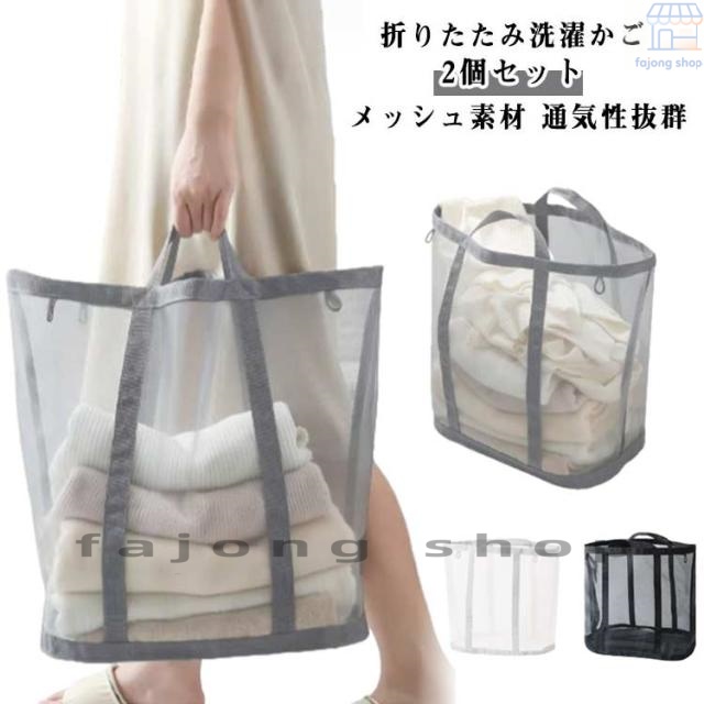 ランドリー 折りたたみ洗濯かご 大容量 ランドリーバッグ 折りたたみ 折りたためる 洗濯物入れ 洗濯籠 洗濯かご バスケット 洗濯カゴ ランドリーバスケット メッシュ 持ち運び おしゃれ 収納 折り畳み 洗濯 軽量 2個セット 玩具収納 多機能