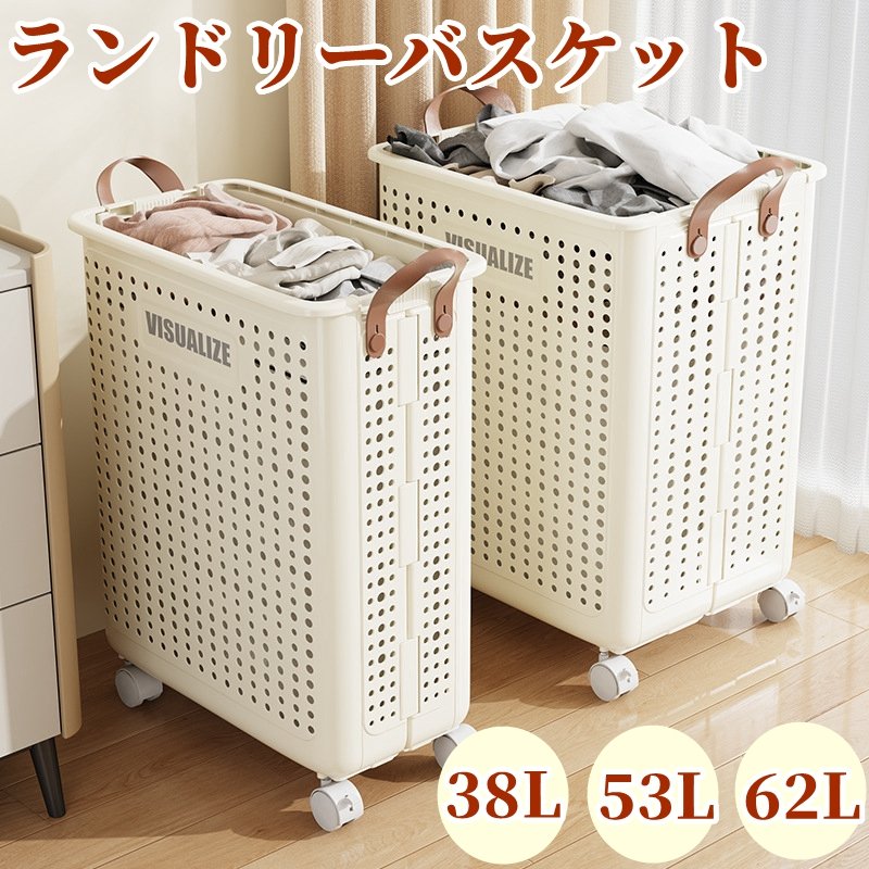 ■ランドリーバスケット 折りたたみ 大容量 スリム 洗濯カゴ 洗濯かご ランドリー バスケット 洗濯籠 キャスター付き 取っ手付き ランドリ
