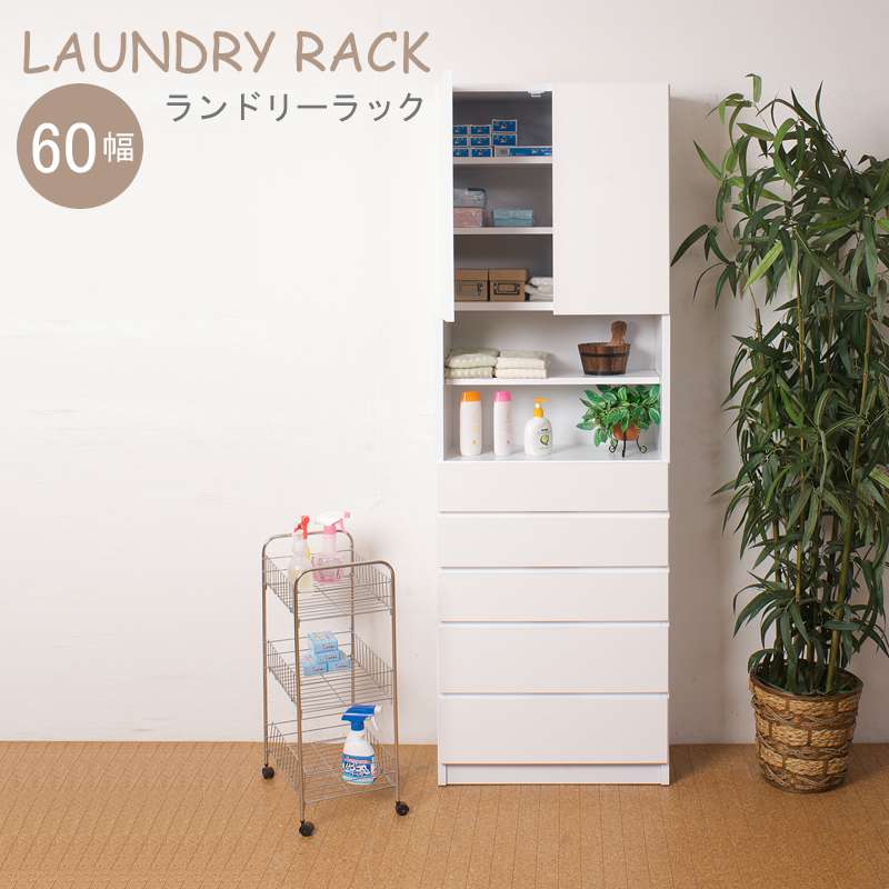 ホワイト 60センチ ランドリーラック 隙間 日本製 ラック ワイド