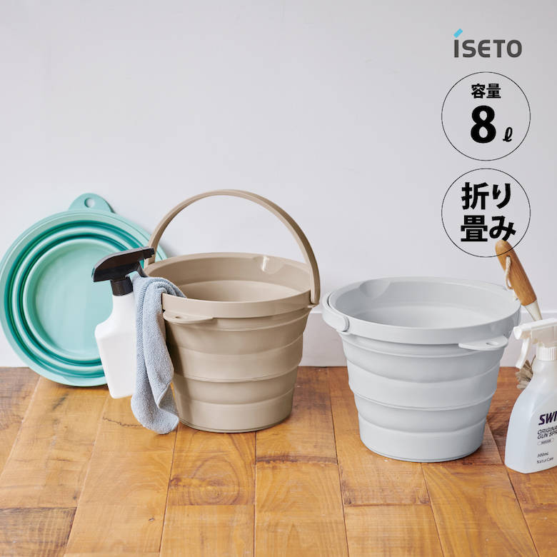 ■【1/3三太郎の日◆P10倍】 iseto 折りたためるソフトバケツ 8型 容量8L I-614 伊勢藤 防災用バケツ コンパクト ランドリー 洗面所 アウト