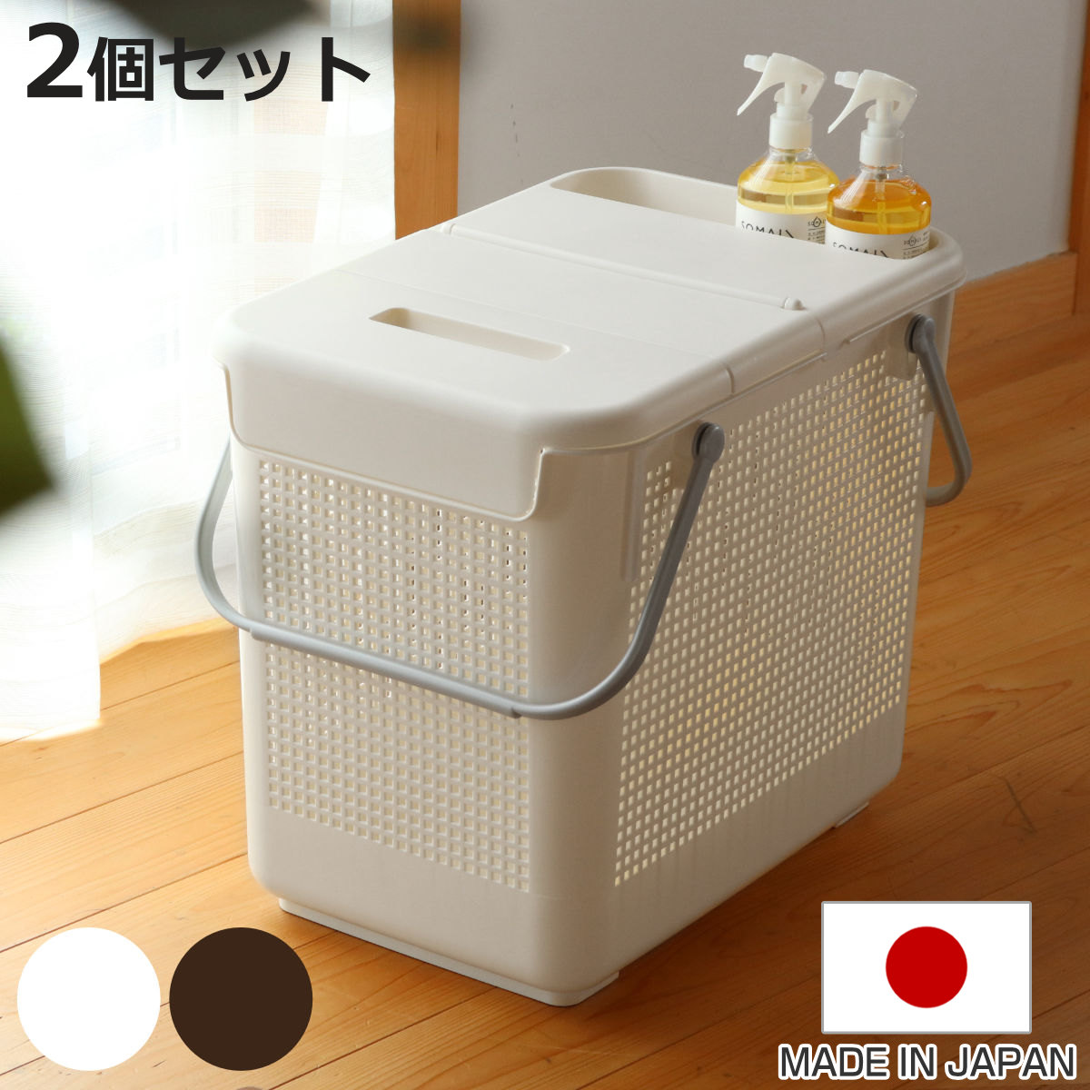 ランドリーワゴンに収納できるシンプルな取っ手付きのランドリーバスケット。洗濯かごとしてサニタリーで活躍。33Lだから30Lの衣類もらくらくのLサイズ。