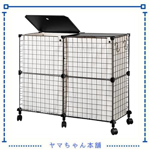 ■UZENN 144L ランドリーバスケット 蓋付き 洗濯カゴ 仕分け 大容量 キャスター付き ランドリー ボックス ワイヤーネット 洗濯物入れ 角型
