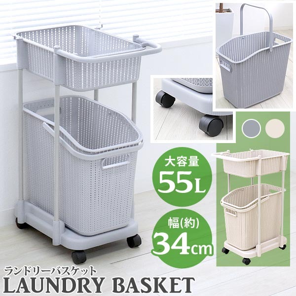 ■ランドリーバスケット スリム 2段 ランドリー バスケット カゴ ランドリーラック ランドリーボックス ランドリーワゴン 洗濯かご 洗濯カ