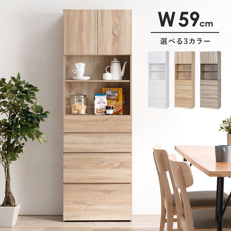 ■ハイタイプすき間収納 隙間ラック スリムラック 幅59cm 高さ180.5cm ランドリー キッチン リビング 引き出し 扉付き棚 キャスターワゴン