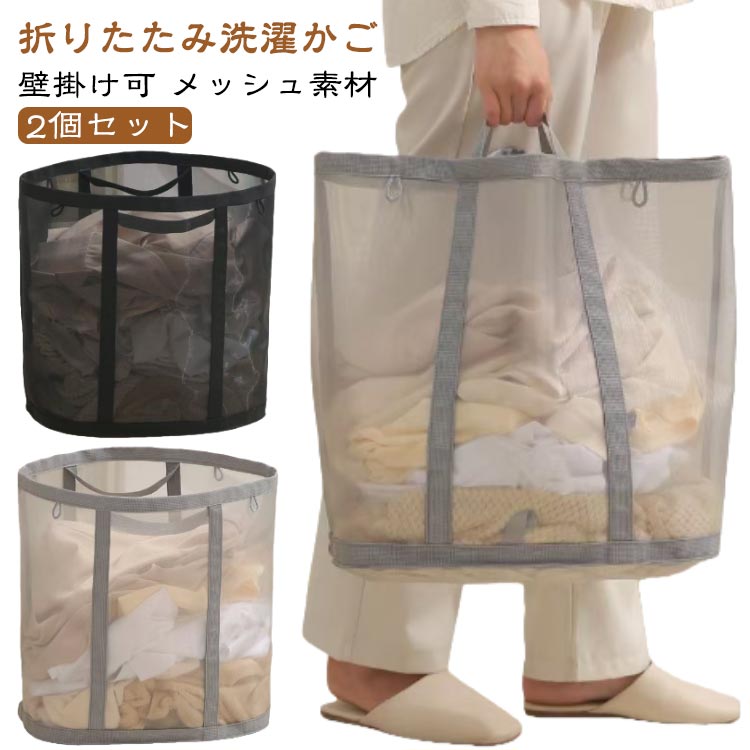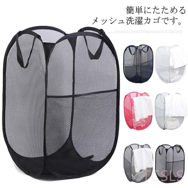 かご 洗濯かご カビ予防 カゴ コンパクト バスケット メッシュ ランドリー 脱衣かご 収納ボックス 軽い 軽量 便利 折り畳み式 簡単 ランドリー用品 グッズ 通気性 収納 洗濯物入れ おもちゃ 折りたたみ